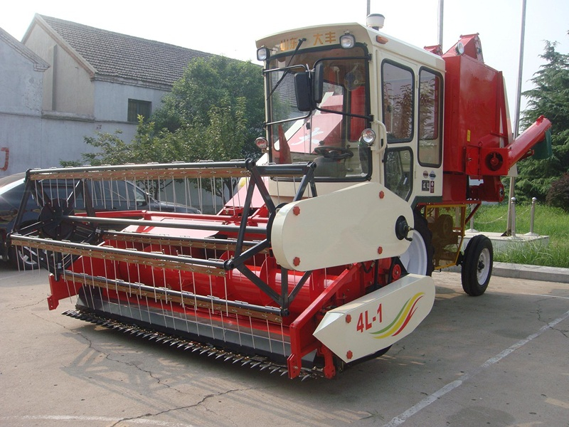 The 4L-1.0 soybean combine harvester is wheeled full-feeding and self-propelled type. It use automatic formed floating cutter to ensure lowest harvesting height, and use re-threshing device to obtain low loss rate and high cleanliness.